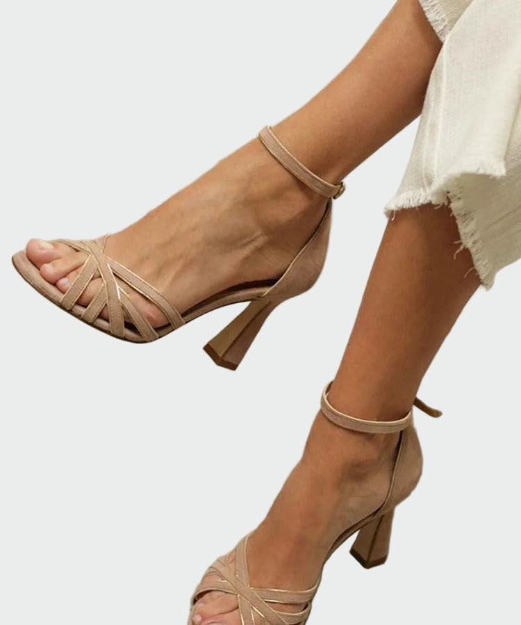 Sandálias Elegantes Lucie com Salto Bloco e Tira Cruzada