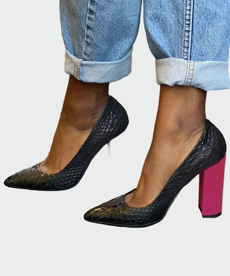 Helena Elegantes Sapatos de Salto Alto Textura de Cobra Palmilhas Confortáveis