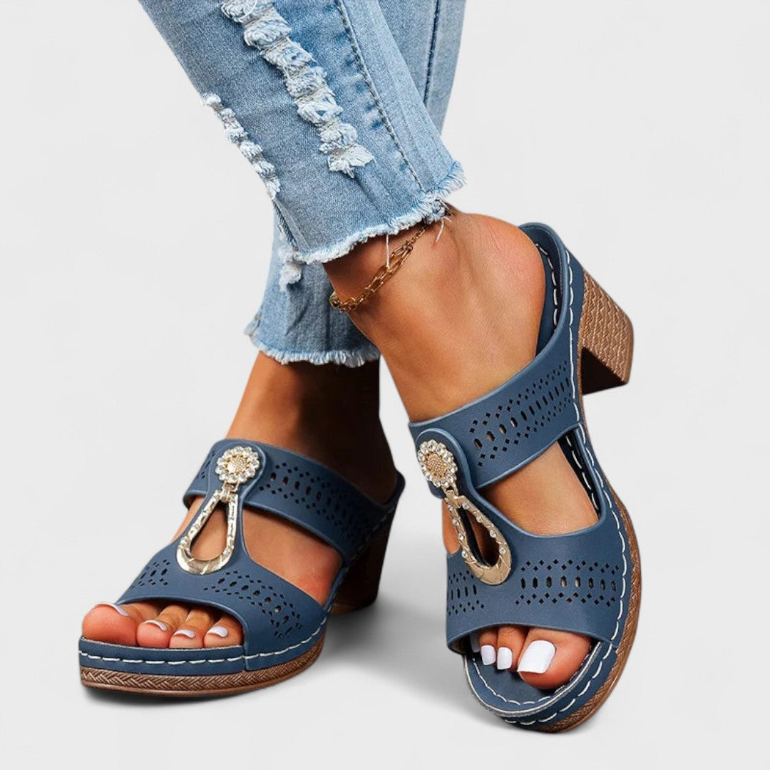 Chrisitina - Sandálias ortopédicas de couro com salto confortável