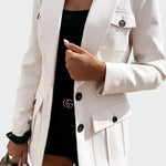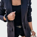Saco com design refinado, que confere um estilo dinâmico e moderno. Apresenta um clássico colarinho de lapela, botões na parte da frente e práticas bolsos com aba. Ideal para um visual de trabalho, mas também para combinações mais casuais, acrescenta charme e elegância em qualquer ocasião.